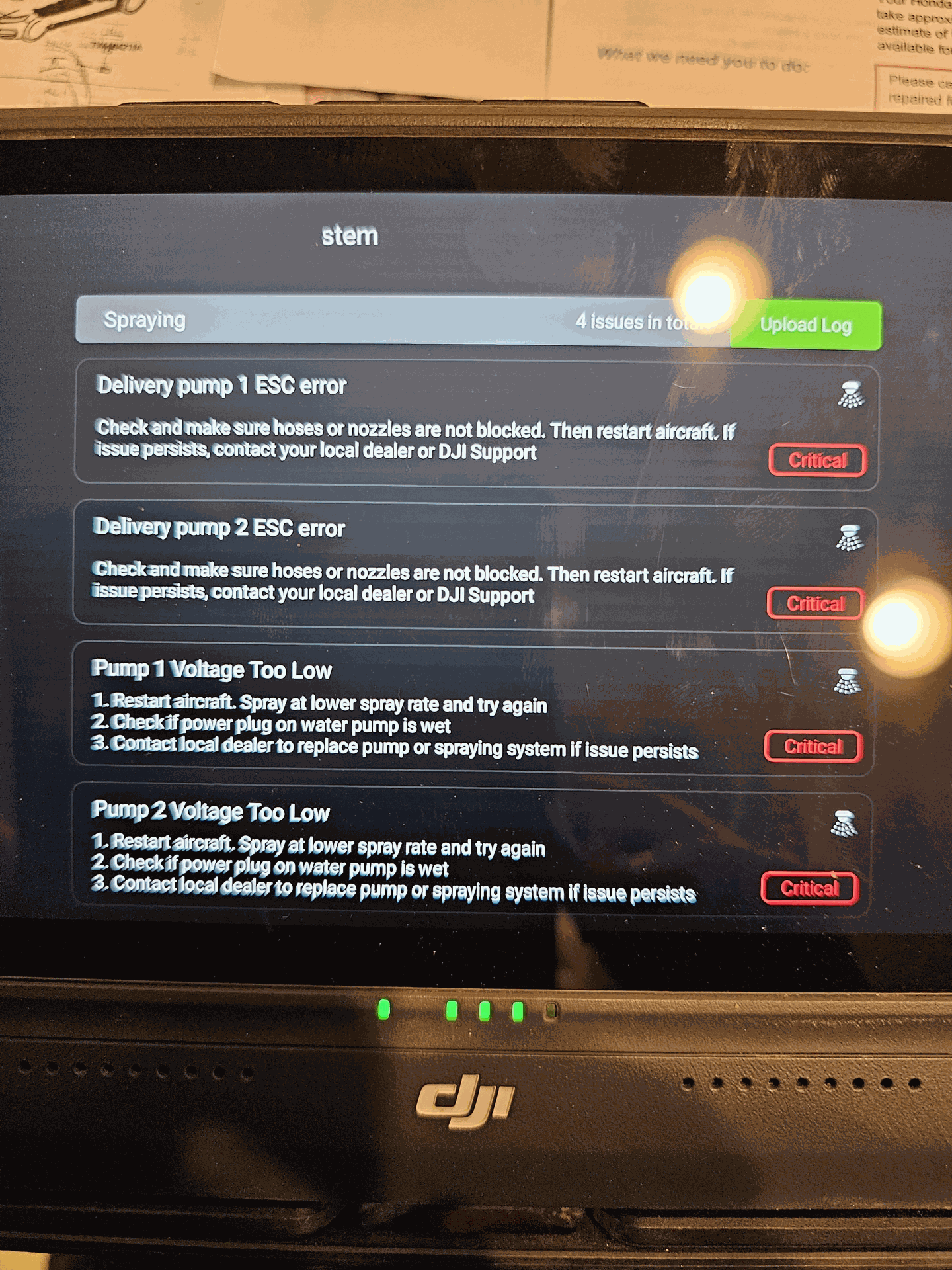 What can cause DJI Delivery Pump ESC and Pump Voltage Too Load errors?