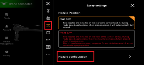 3. Find the "Spray Settings" interface, click the "Nozzle configuration" function option to enter the configuration interface.