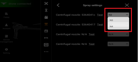4. As shown in the figure, this drone is a dual centrifugal version, and only two nozzle configurations of N3 and N4 are displayed.
