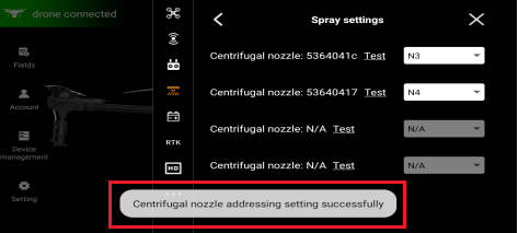 10. At this time, the message "Centrifugal nozzle addressing setting successfully" will be displayed on this interface.