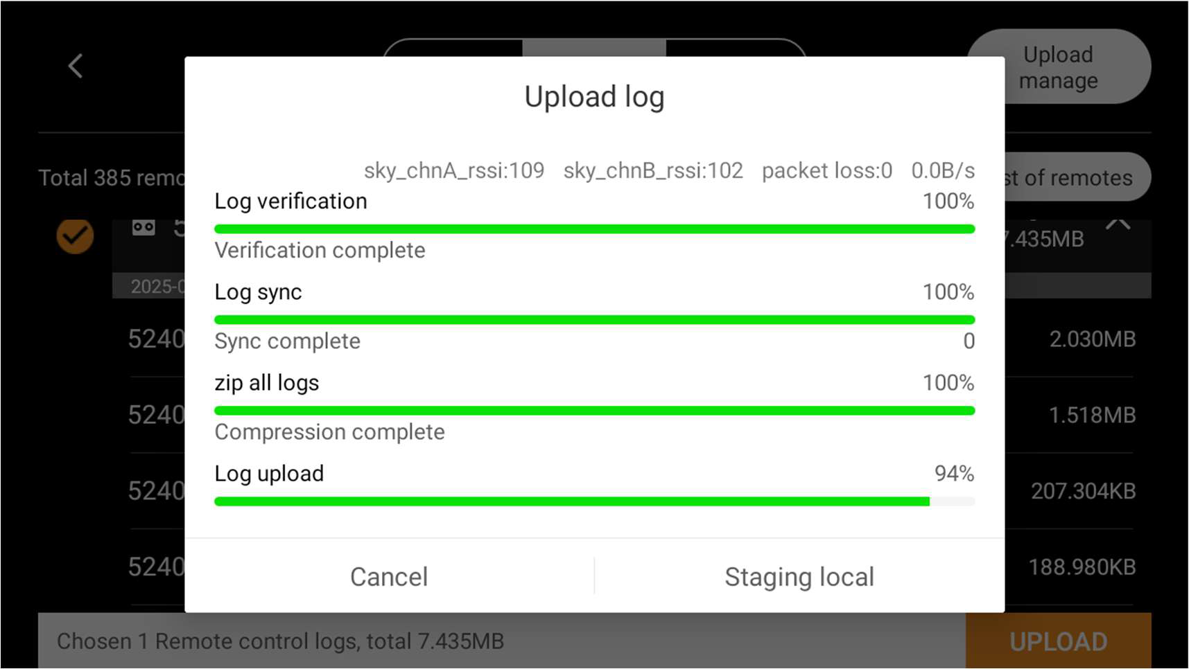 ② During the log upload process, ensure that the mobile device is placed in a safe and stable position. Avoid any movement or dropping of the device that could interrupt the operation or cause physical damage.​