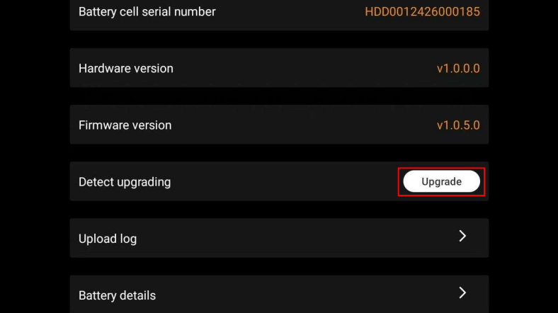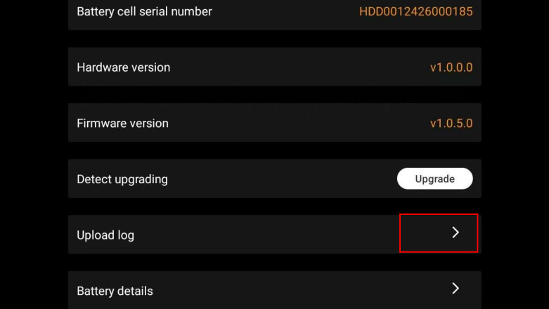 3. Enter the battery management screen and tap "UPLOAD LOG".