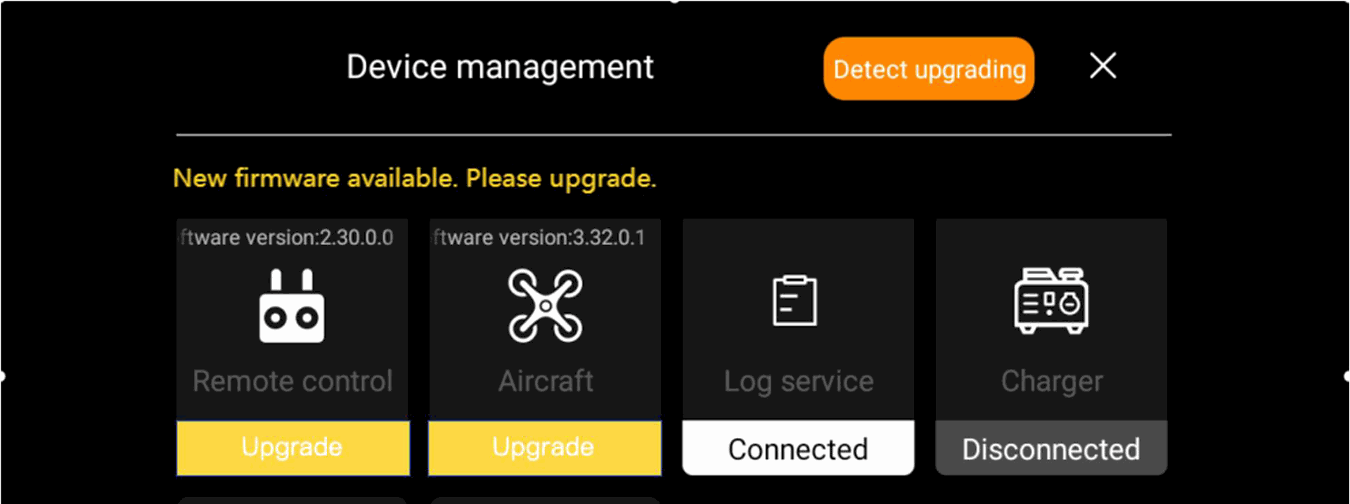 Suitable Weather Conditions: Whenever possible, select clear weather with little to no wind and no precipitation (rain or snow) for the firmware upgrade. Adverse weather conditions may affect the performance of the drone and related equipment, increasing the likelihood of upgrade failure.