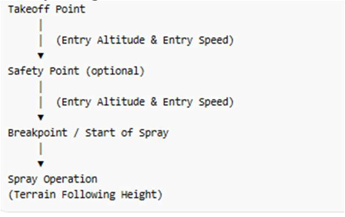 spraying altitude, the drone will fly using the configured entry/exit altitude and speed during