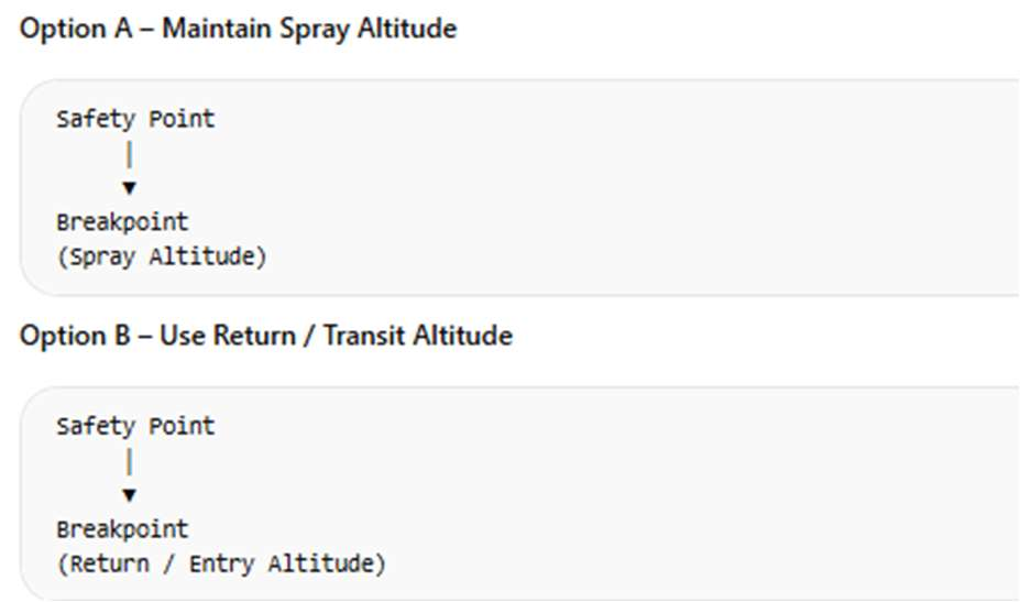 choose how the drone behaves between the Safety Point and the Breakpoint.